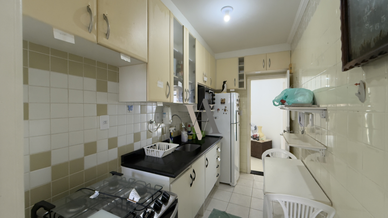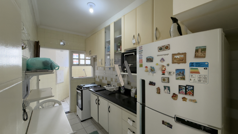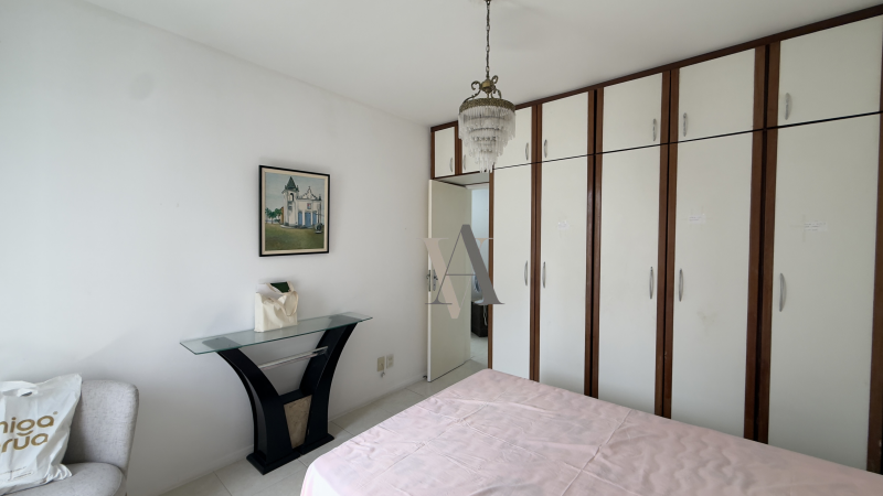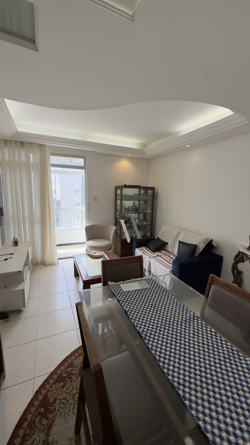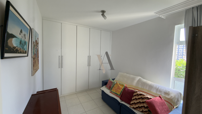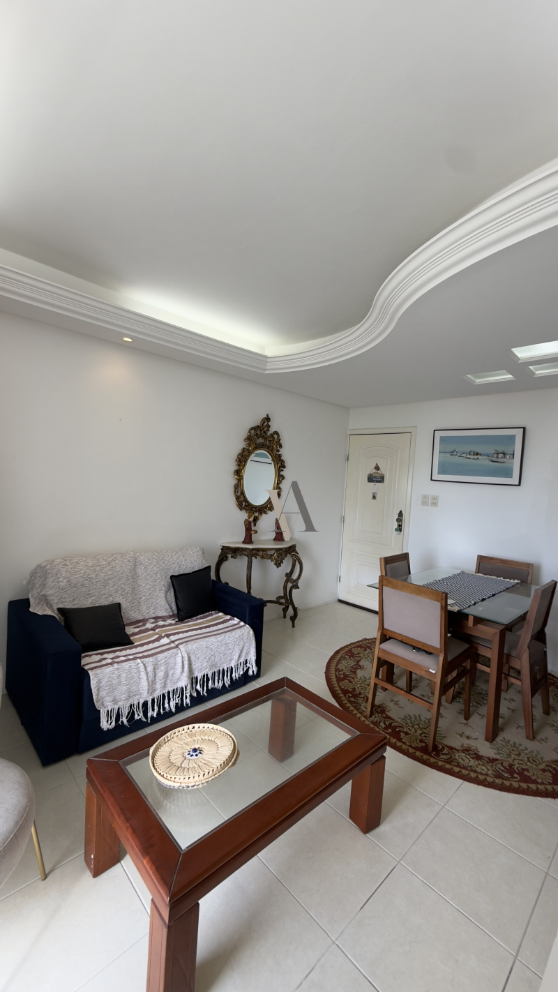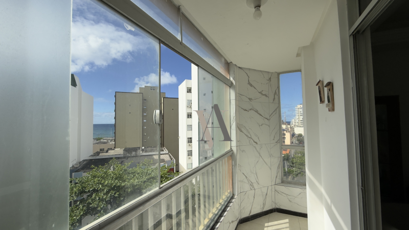 Apartamento à venda de dois quartos, suíte, varanda, vista mar, nascente, sala de jantar e estar, banheiro social, cozinha, área de serviço e dependência completa, uma vaga de garagem. O imóvel foi totalmente reformado.