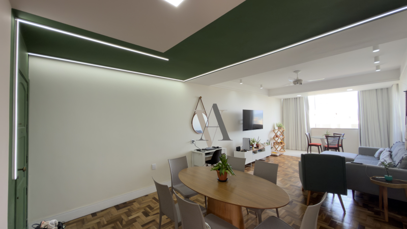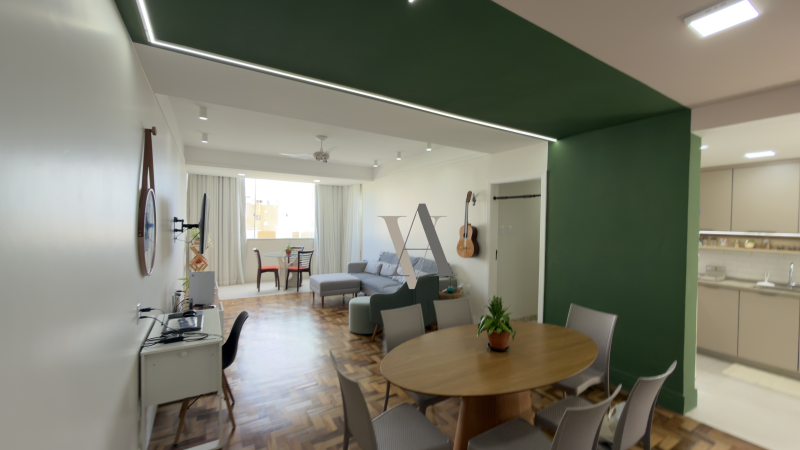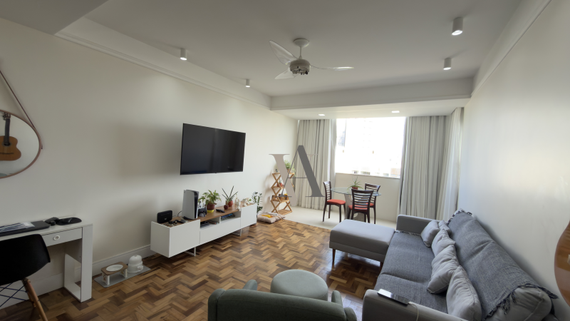 Apartamento de três quartos,, suíte, varanda integrada à sala, dependência completa, nascente, vista mar, 122m2, 1 vaga de garagem coberta. Apartamento reformado, cozinha americana, 4 por andar. Armários planejados.