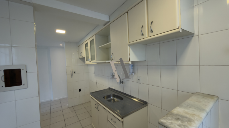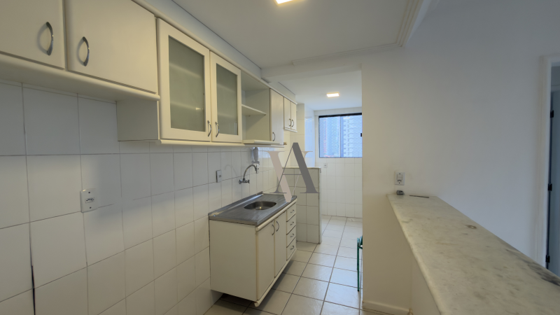 Apartamento de um quarto, sala, varanda, cozinha americana, área de serviço, armários em todos os ambientes, 1 vaga de garagem, 50m2, Norte/Sul. O condomínio possui academia, piscina, salão de festas, elevadores, portaria 24h