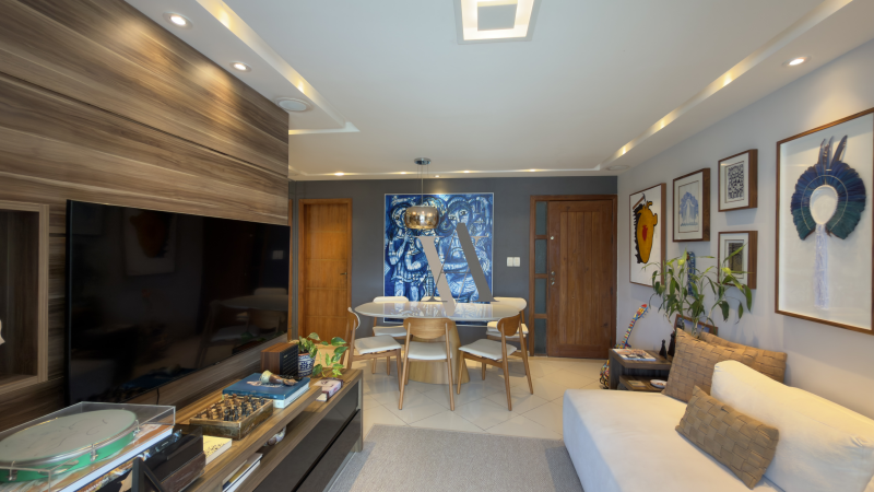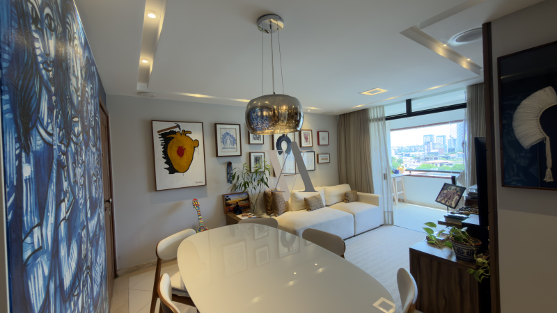 Apartamento de três quartos totais, suíte, nascente, varanda, banheiro social, cozinha, área de serviço. Totalmente reformado, projeto de iluminação e gesso. 82 m2, duas vagas. Armários planejados de excelente qualidade na cozinha e banheiros.