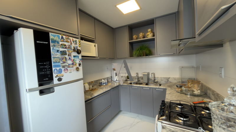 O condomínio possui completa infraestrutura: Piscina, quiosque com churrasqueira, salão de festas, academia, parque, quadra, playground amplo e portaria 24h